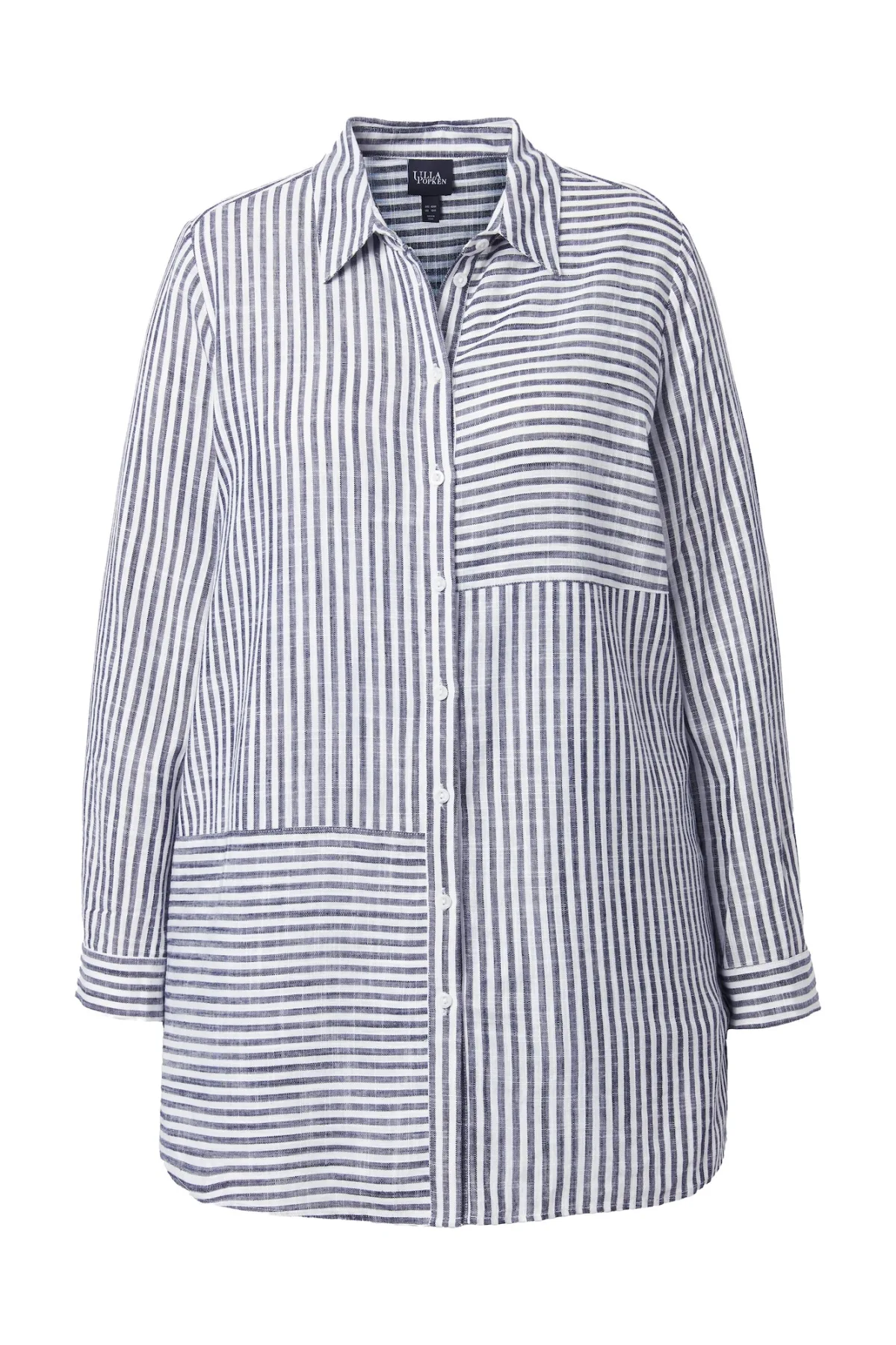 Blouse type: Klassieke blouse; Design: Gevoerde zoom/rand, Knop sluiting; Materiaal: Viscose; Motief: Gestreept; Kraag: Kentkraag; Extra's: Op staal naden; Pasvorm: Normale pasvorm; Armlengte: Lange mouw; Lengte: Normale lengte