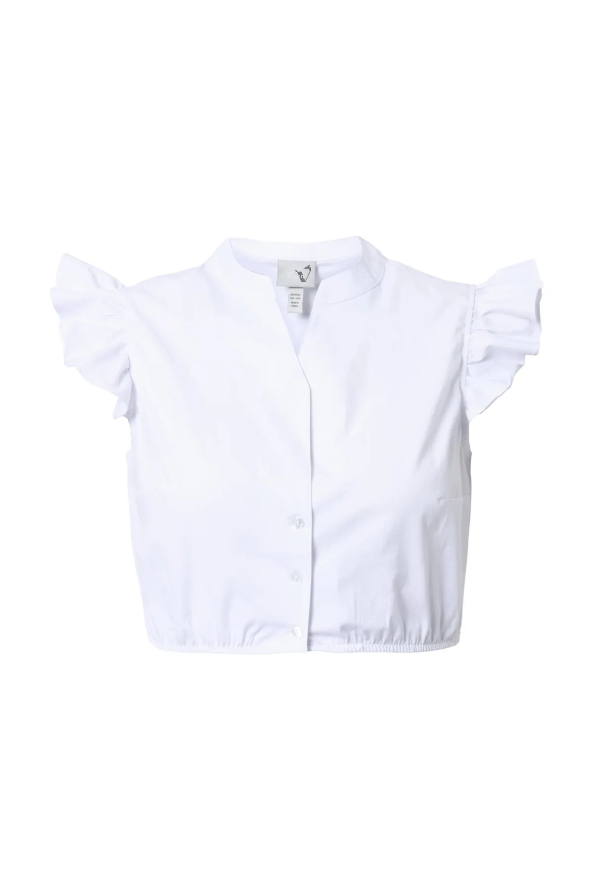 Blouse type: Blouseshirt; Design: Knop sluiting; Materiaal: Katoen; Motief: Effen; Kraag: Opstaande kraag; Details: Gedrapeerd; Extra's: Op staal naden; Pasvorm: Normale pasvorm; Armlengte: Kwartmouw; Lengte: Korte pasvorm
