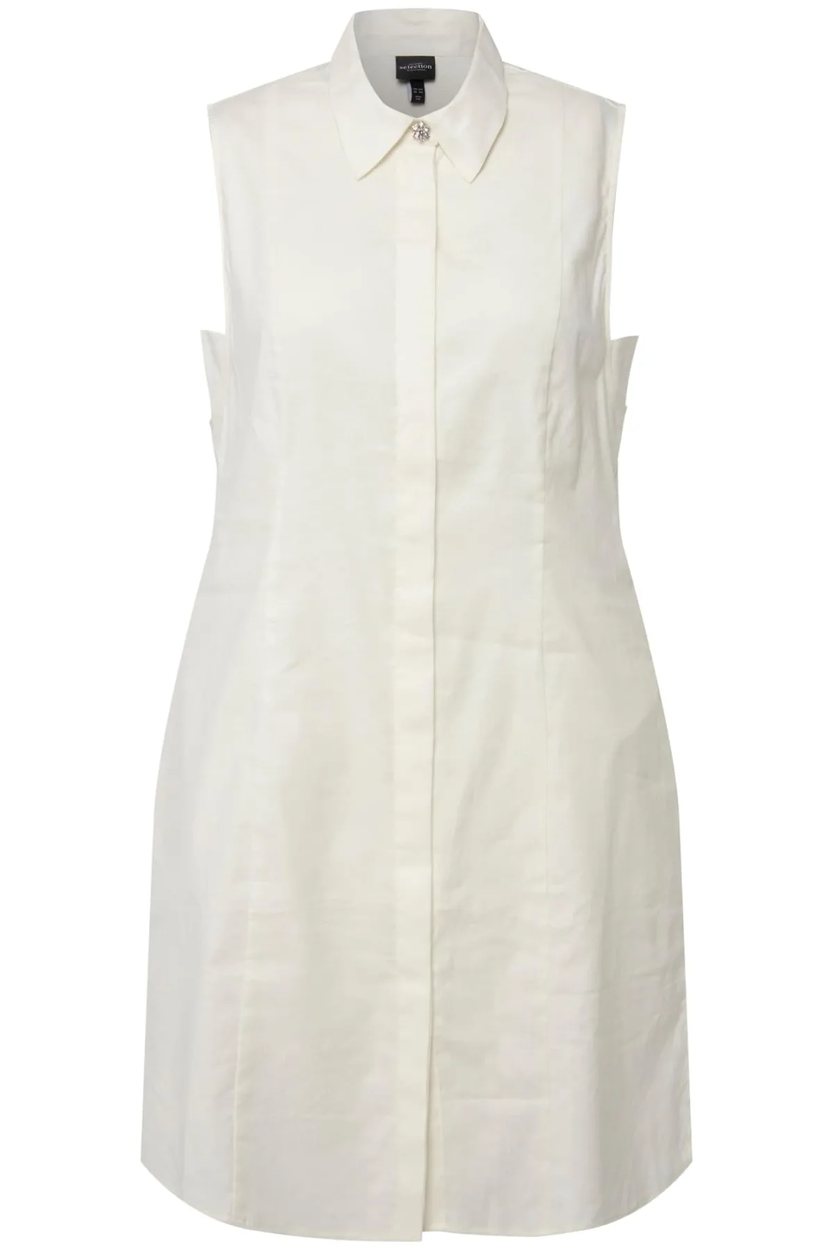 Blouse type: Klassieke blouse; Type sluiting: Knoopsluiting; Materiaal: Katoen; Motief: Effen; Kraag: Kentkraag; Pasvorm: Normale pasvorm; Armlengte: Mouwloos; Lengte: Lange pasvorm