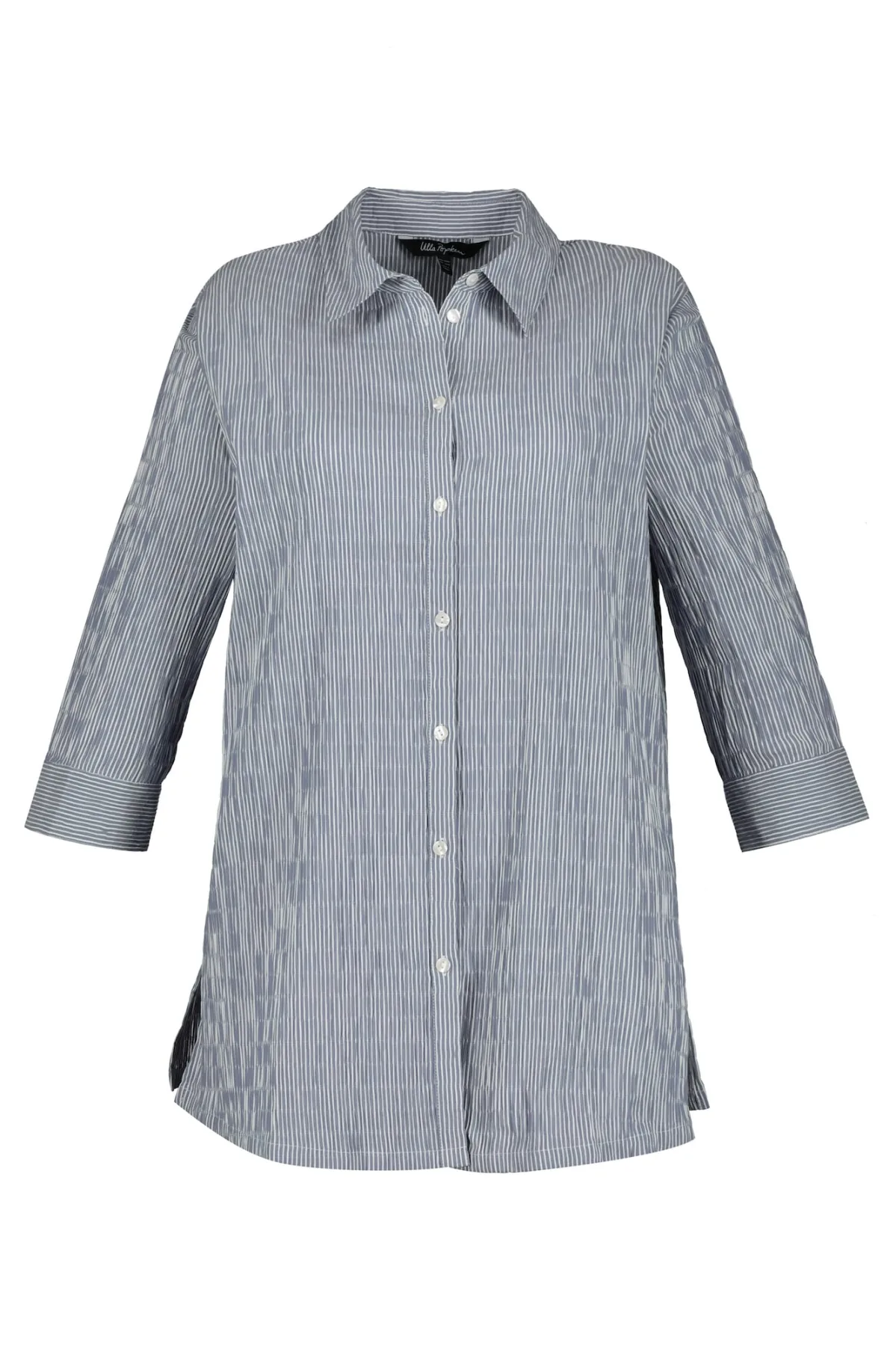 Blouse type: Klassieke blouse; Design: Gevoerde zoom/rand, Ronde zoom, Zijdelingse inkepingen, Knop sluiting; Type sluiting: Knoopsluiting; Materiaal: Katoen; Motief: Effen; Kraag: Kentkraag; Details: Plooien; Extra's: Label patch/label flag, Op staal naden, Met textuur; Pasvorm: Normale pasvorm; Armlengte: Driekwart mouw; Lengte: Normale lengte