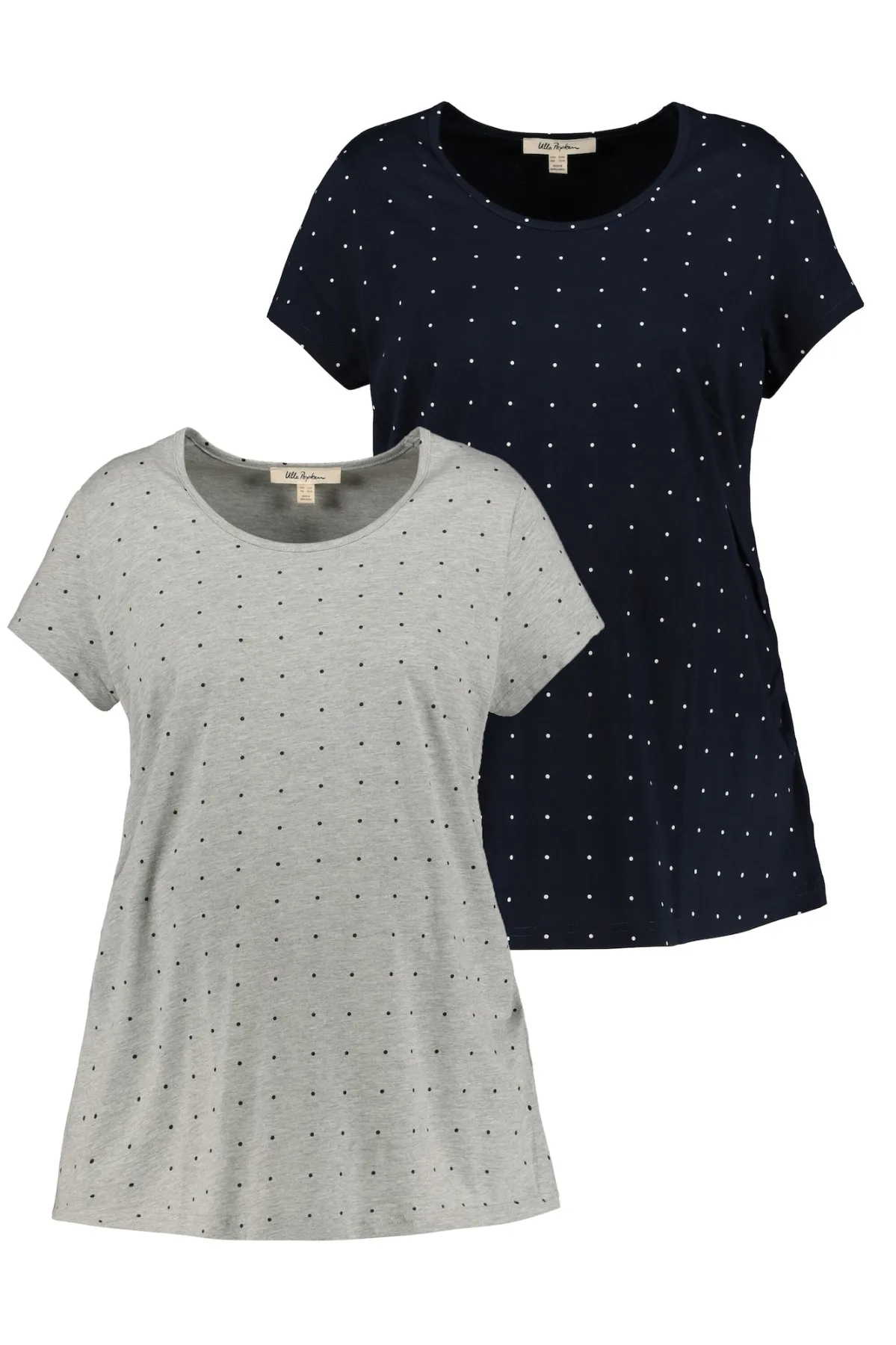 Design: Gevoerde zoom/rand, Rechte zoom; Materiaal: Jersey; Halstype: Ronde hals; Motief: Gestippeld; Extra's: All-over patroon, Label patch/label flag, Voelt zacht aan; Pasvorm: Normale pasvorm; Aantal: 2 Pack; Armlengte: Kwartmouw; Lengte: Normale lengte