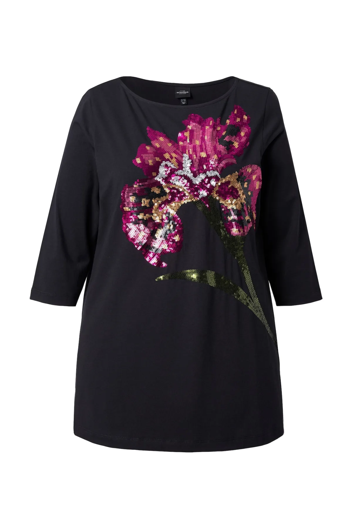 Design: Gevoerde zoom/rand; Materiaal: Jersey; Halstype: Ronde hals; Motief: Bloemenprint; Details: Pailletten; Extra's: Label patch/label flag, Op staal naden; Pasvorm: Normale pasvorm; Armlengte: Driekwart mouw; Lengte: Normale lengte