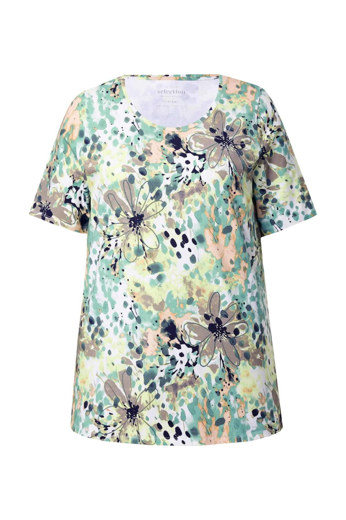 Design: Gevoerde zoom/rand, A-lijn, Zijdelingse inkepingen; Materiaal: Jersey; Halstype: Ronde hals; Motief: Bloemenprint; Details: Sierstenen; Extra's: All-over patroon; Pasvorm: Normale pasvorm; Armlengte: Halve mouw; Lengte: Normale lengte