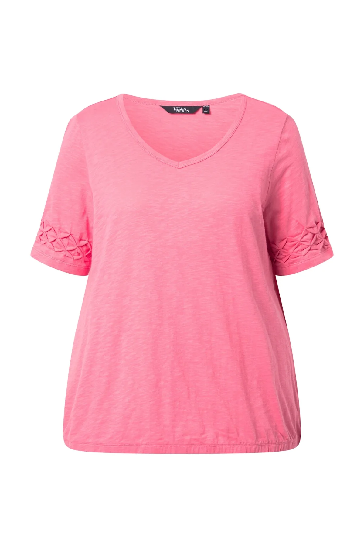 Design: Gevoerde zoom/rand; Materiaal: Jersey; Halstype: V-hals; Motief: Effen; Extra's: Op staal naden; Pasvorm: Normale pasvorm; Armlengte: Halve mouw; Lengte: Normale lengte