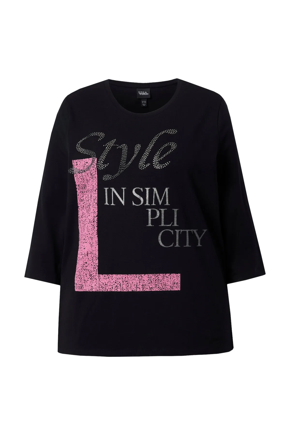 Design: Gevoerde zoom/rand, Rechte zoom, Nektape; Materiaal: Jersey; Halstype: Ronde hals; Motief: Tekst print; Details: Sierstenen; Extra's: Voelt zacht aan, Huidvriendelijk materiaal; Pasvorm: Normale pasvorm; Armlengte: Driekwart mouw; Lengte: Normale lengte