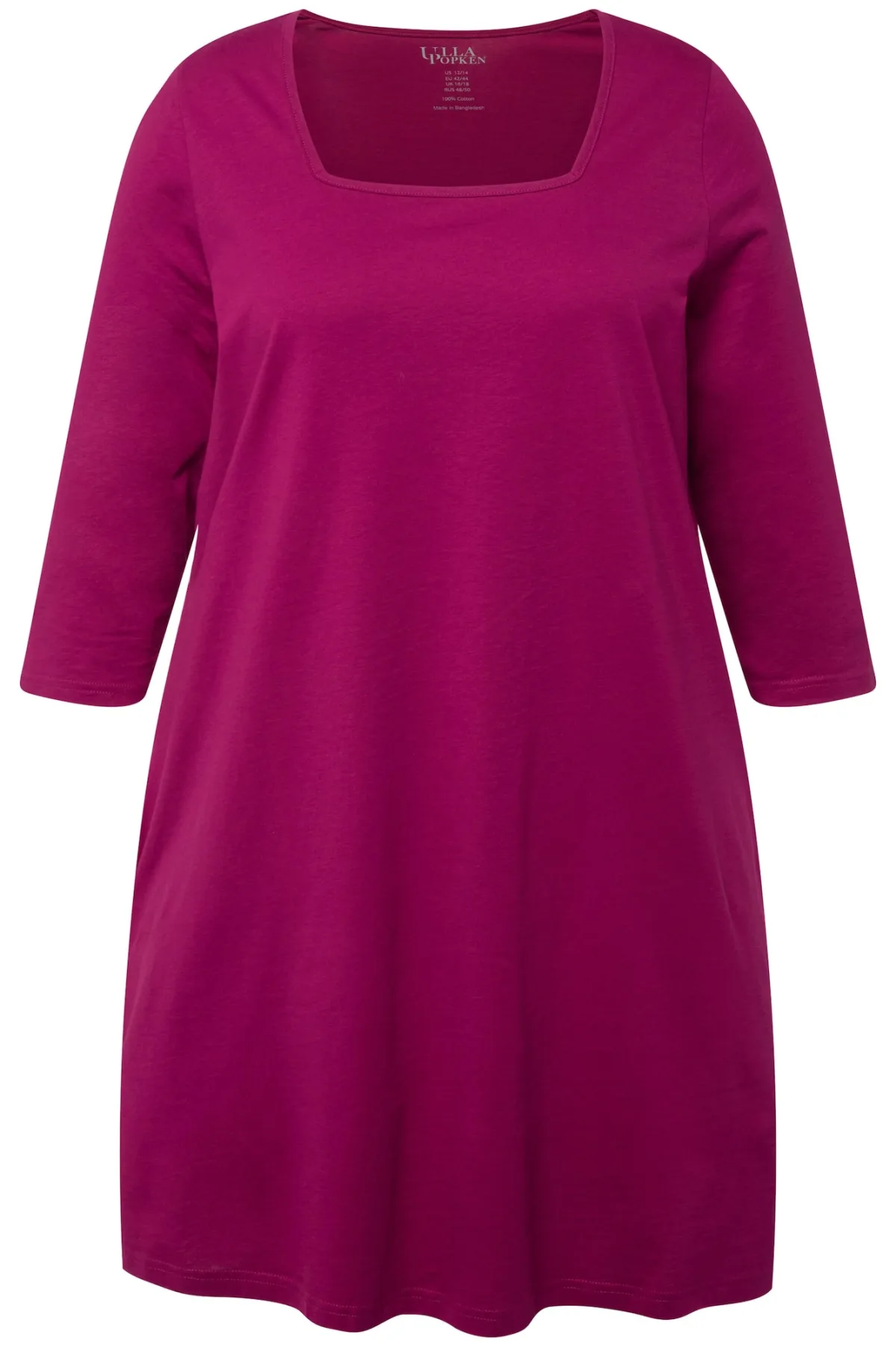 Materiaal: Jersey; Halstype: Carréhals; Motief: Effen; Kraag: Tuniek kraag; Pasvorm: Losse pasvorm; Armlengte: Driekwart mouw; Lengte: Lange pasvorm