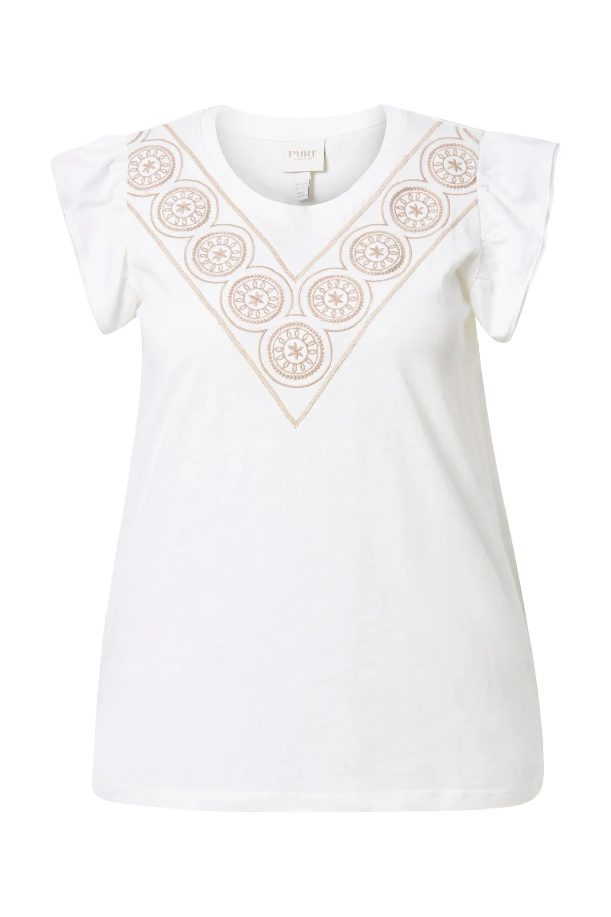 Design: Gevoerde zoom/rand, Rechte zoom; Materiaal: Jersey; Halstype: Ronde hals; Details: Borduursels, Volant; Extra's: Op staal naden, Voelt zacht aan; Pasvorm: Normale pasvorm; Armlengte: Kwartmouw; Lengte: Normale lengte