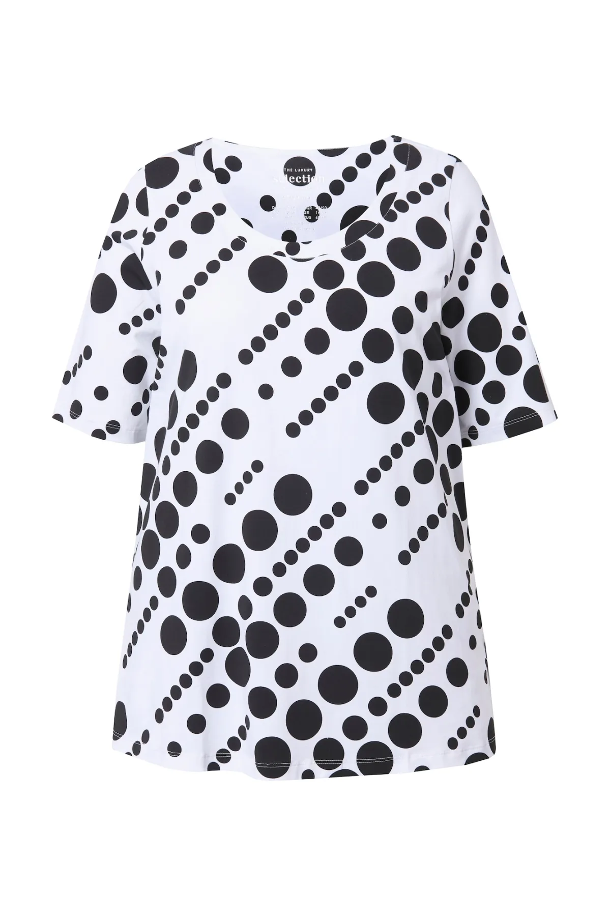 Design: Gevoerde zoom/rand, Zijdelingse inkepingen; Materiaal: Jersey; Halstype: Ronde hals; Motief: Gestippeld; Extra's: All-over patroon, Voelt zacht aan; Pasvorm: Normale pasvorm; Armlengte: Halve mouw; Lengte: Normale lengte