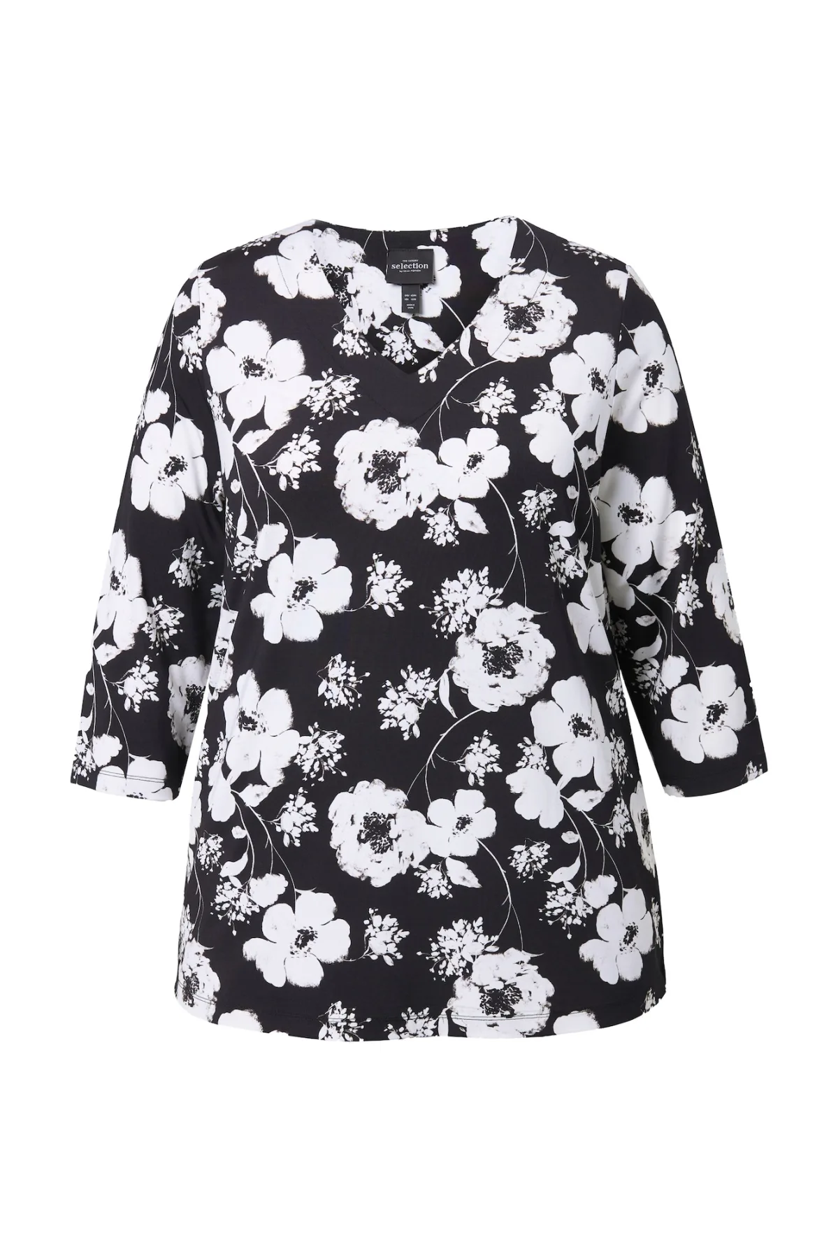 Design: Gevoerde zoom/rand; Materiaal: Jersey; Halstype: V-hals; Motief: Bloemenprint; Extra's: All-over patroon, Voelt zacht aan; Pasvorm: Normale pasvorm; Armlengte: Driekwart mouw; Lengte: Normale lengte