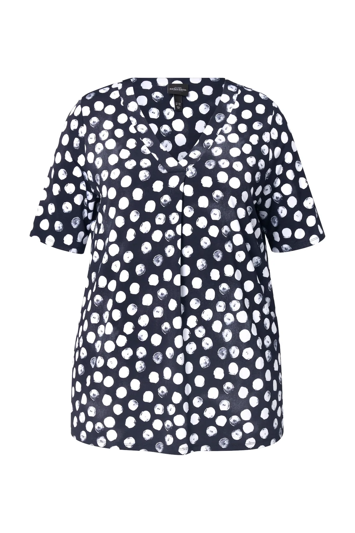 Design: Gevoerde zoom/rand; Materiaal: Viscose; Halstype: V-hals; Motief: Gestippeld; Details: Plissé; Extra's: All-over patroon; Pasvorm: Normale pasvorm; Armlengte: Halve mouw; Lengte: Normale lengte