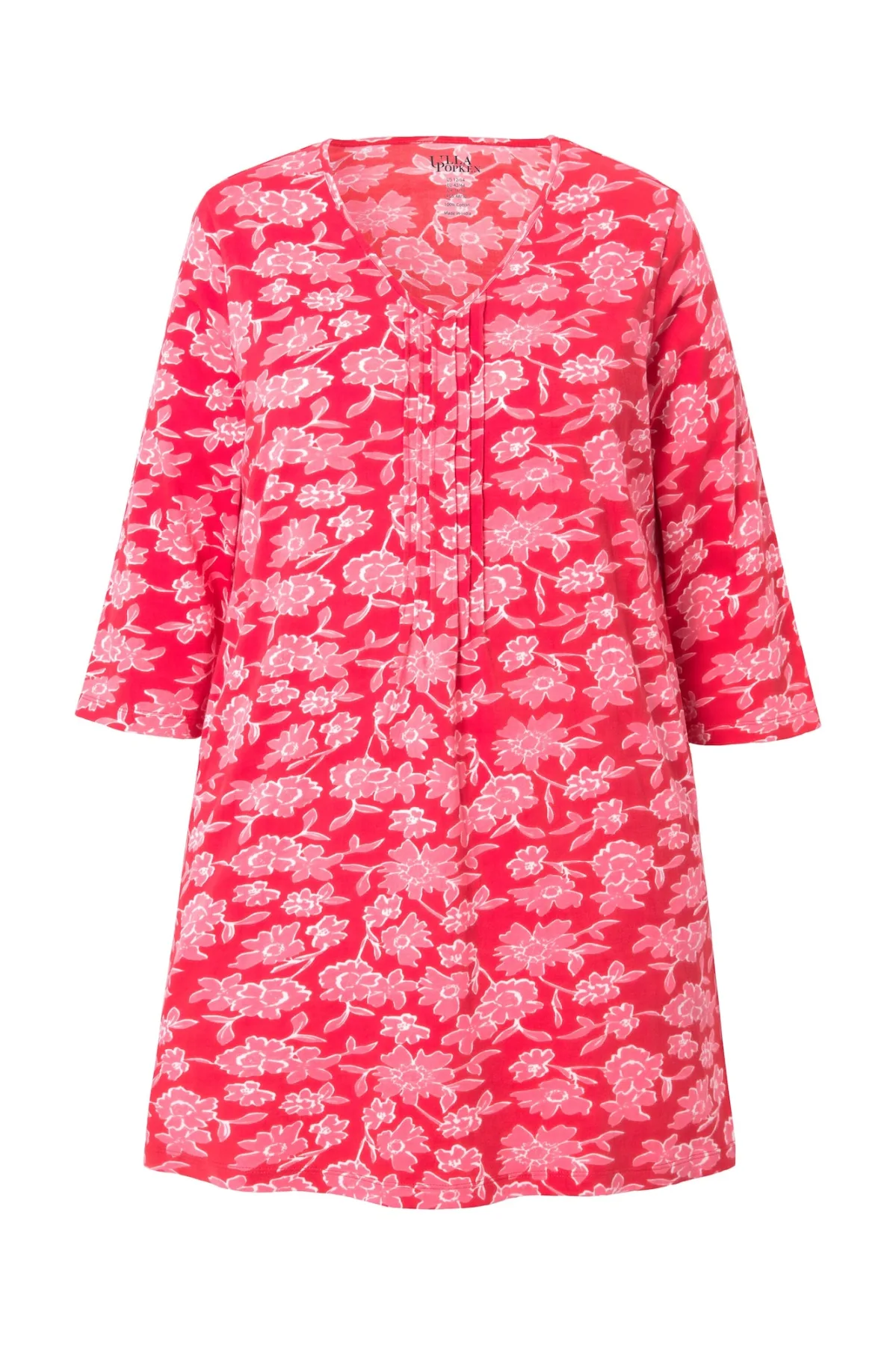 Design: Gevoerde zoom/rand; Materiaal: Jersey; Halstype: V-hals; Motief: Bloemenprint; Kraag: Zonder kraag; Details: Plooien; Extra's: Voelt zacht aan; Pasvorm: Normale pasvorm; Armlengte: Driekwart mouw; Lengte: Lange pasvorm