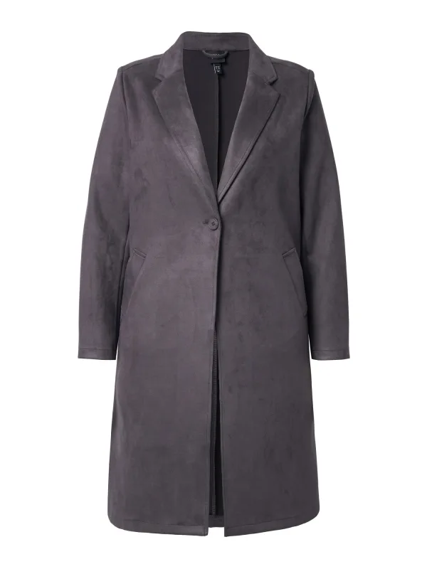 Type mantel: Klassieke mantel; Design: Revers kraag, Zijdelingse inkepingen; Type sluiting: Knoopsluiting; Voering: Niet gevoerd; Materiaal: Imitatieleder; Motief: Effen; Extra's: Op staal naden, Velours look; Pasvorm: Normale pasvorm; Lengte: Normale lengte