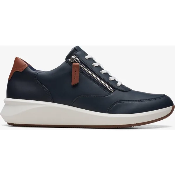 Wanneer de drijfveer beweging is, is onze Un Rio Zip-schoen de sportieve zool waarop je kunt rekenen. Met slanke navy leren bovenkant voor een premium gevoel, biedt onze kenmerkende demping onder de voet de hele dag comfort, terwijl een luchtige zool de stappen licht en vrij houdt. De ademende voering houdt de voeten fris, wat punten scoort voor de barefoot-dragers, en een handige zijrits maakt het een fluitje van een cent om ze aan en uit te trekken.