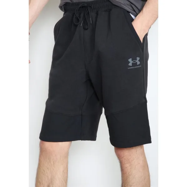 Under Armour Heren Shorts. Ultrazachte, lichtgewicht fleece van katoenmix. Geborstelde binnenkant voor extra warmte. Geribde polyester elastische tailleband met extern trekkoord. Open handzakken, ontwerp gesneden en genaaid. Valse vlieg, geen voering. Under Armour Logo Branding op de voorkant van het been en op de achterkant van het rechterbeen. Binnenbeenlengte: 10".
