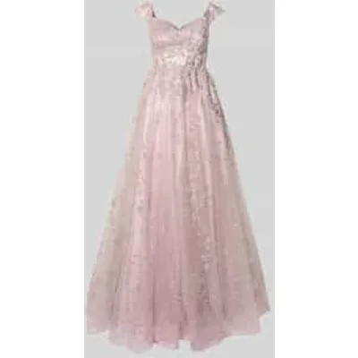 Dames avondjurk van Unique;Tule;A-lijn;maxi-jurk;glanzend;Stitchings;V-hals;Ruglengte bij maat 36: 133 cm;Borstwijdte bij maat 36: 35 cm