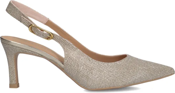 Stralend de lente en zomer in met de LANZ slingbacks van UNISA. Deze elegante hakken met puntige neus en naaldhak geven elke outfit een chique touch. De binnenkant van leer zorgt voor comfort, terwijl de rubberen zool grip biedt. Perfect voor een zomerse bruiloft of een stijlvolle picknick in het park. Combineer met een luchtige midi-jurk of een elegante jumpsuit voor een complete look. De subtiele gouden kleur voegt een vleugje glamour toe zonder te overheersen. De verstelbare gesp zorgt voor een perfecte pasvorm, zodat je de hele dag zorgeloos kunt genieten.