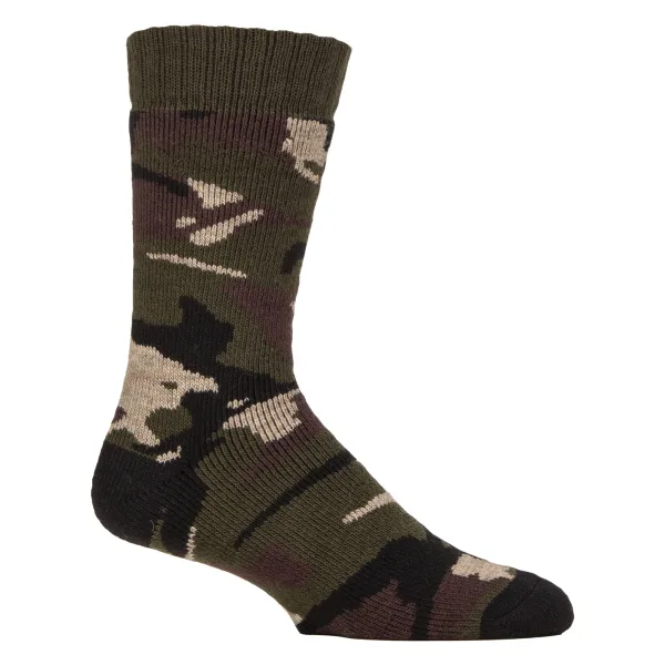 Country Pursuit - 1 Pack Woodland Walker Sokken: Maak je klaar voor de buitenlucht met de Country Pursuit Woodland Walker Sokken, ontworpen om je voeten warm, comfortabel en beschermd te houden tijdens elk avontuur. Deze thermische bootsokken zijn ideaal voor wandelingen op het platteland, wandelpaden of om buiten te werken in koudere temperaturen. Het klassieke camouflage ontwerp voegt een robuuste stijl toe en past perfect bij outdooruitrusting. Gemaakt van een hoogwaardig thermisch wolmengsel, bieden ze uitstekende isolatie terwijl ze ademend blijven voor een hele dag draagcomfort. De gevoerde binnenzool en zachte binnenkant helpen schokken te absorberen, voetvermoeidheid te verminderen en bieden extra warmte wanneer de temperatuur daalt. De duurzame stofmix combineert acryl voor zachtheid, wol voor warmtebehoud en polyamide voor sterkte, wat zorgt voor langdurig gebruik in boots of wandelschoenen. Met een snug-fittende, blije pasvorm en dikke constructie bieden deze sokken betrouwbare bescherming en warmte in alle buitensportomstandigheden. Verkrijgbaar in meerdere maten voor UK schoenmaten 4-8, 6-11 en 12-14, zijn de Woodland Walker Sokken een geweldige metgezel voor je volgende landelijke ontsnapping of een dag aan het werk. Extra productdetails: Materiaal: 59% Acryl, 22% Wol, 19% Polyamide Maten: UK 4-8, 6-11, 12-14 Kleur: Camouflage Thermisch wolmengsel voor isolatie Gevoerde ontwerp voor comfort Duurzaam voor buitengebruik Ideaal voor hiken, wandelen en werken Machinewasbaar