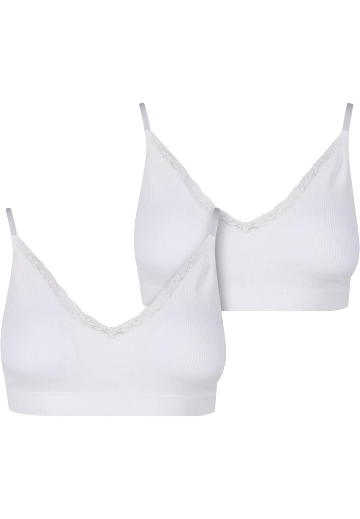 Cup soorten: Uitneembare cups; Soort bandjes: Normale bandjes; Bh/bikini type: Bustier; Beugel: Zonder beugel; Design: Elastische taille/zoom, Rechte zoom; Type sluiting: Haakjes; Materiaal: Jersey; Motief: Effen; Details: Kant; Extra's: Verstelbare bandjes, Op staal naden, Met textuur; Aantal: 2 Pack