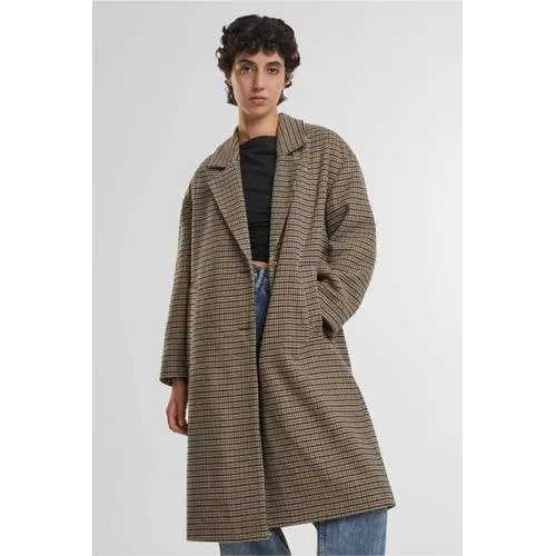 Deze manteljas van Urban Classics Curvy is ideaal voor dames met een oog voor stijl. De jas heeft een knoopsluiting en een chic reverskraag. De beige en zwarte kleur geven een tijdloze uitstraling, perfect voor elke gelegenheid.
