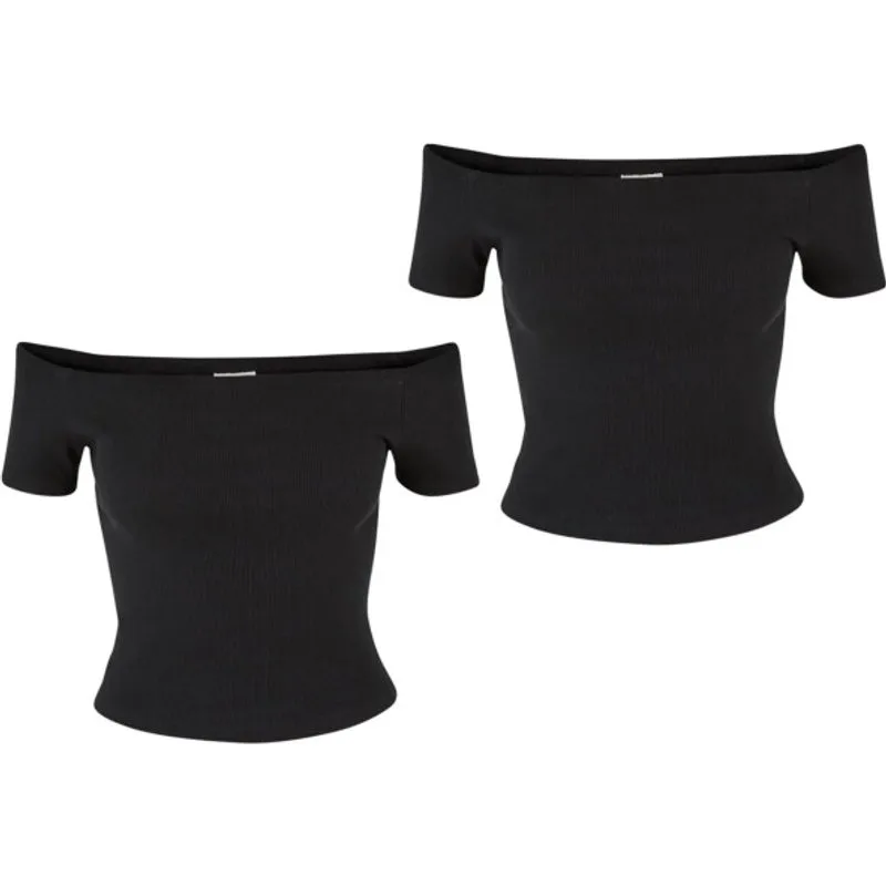 Urban Classics Dames geribd organic cotton off shoulder top (set van 2)
