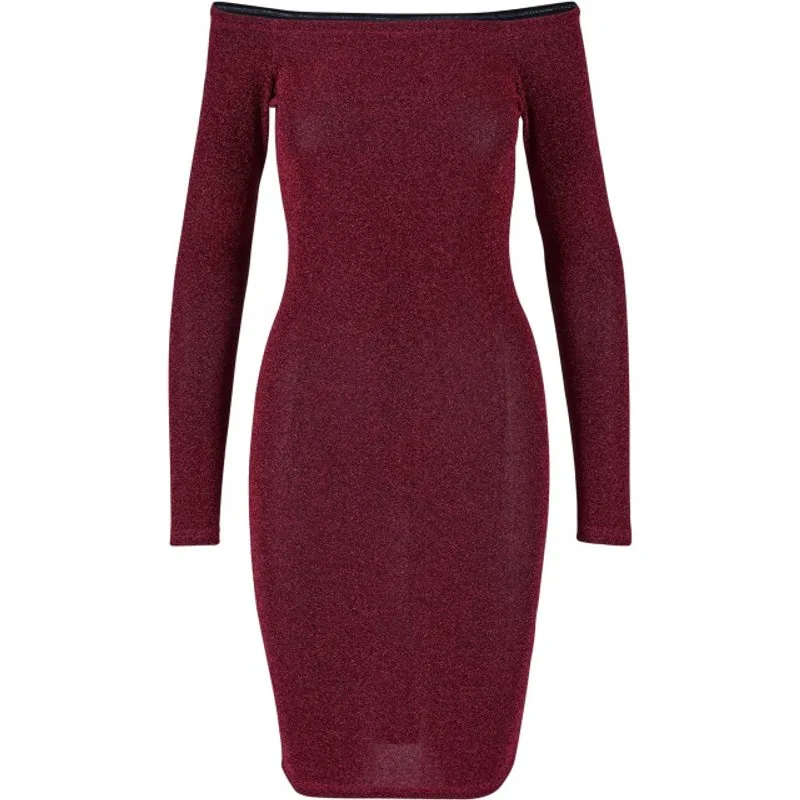 Urban Classics Dames glitter off shoulder jurk met lange mouwen Prijzen