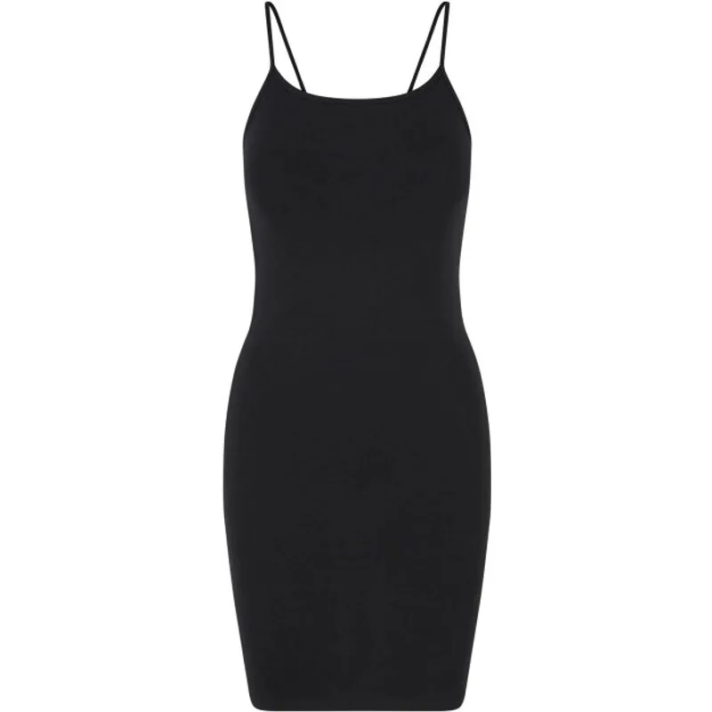 95% Katoen, 5% Elastaan. Stof: Jersey, Gebreid, Stretch. Geschikt voor: Slank. 180gsm. Stoftechnologie: Easy-Clean, zacht. Ontwerp: Eenvoudig. Hals: Ronde Hals. Mouwtype: Mouwloos, Spaghettibandje. Lengte: Mini. XS: 33,5 in. S: 35,5 in. M: 37,5 in. L: 39 in. XL: 41 in. XXL: 43 in. 3XL: 45 in. 4XL: 47 in. 5XL: 49 in.