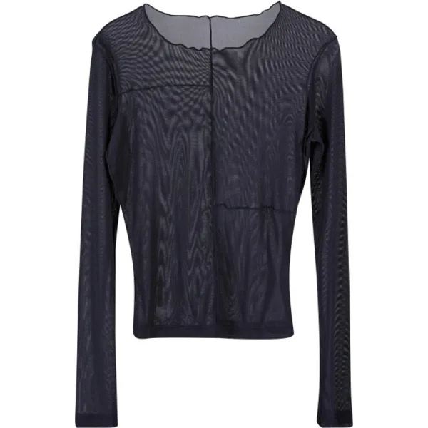 Materiaal: Elastaan, Nylon, Polyamide. Stof: Kettingbreiwerk. Ontwerp: Eenvoudig. Mouwtype: Met lange mouwen. Zoom: Gerold. Hals: Ronde Hals. Blootliggende naden, transparant gaas. Geschikt voor: Slank. 117 g/m. XS: 33 in. S: 35 in. M: 37 in. L: 39 in. XL: 41 in. XXL: 43 in. 3XL: 45 in. 4XL: 47 in. 5XL: 49 in.