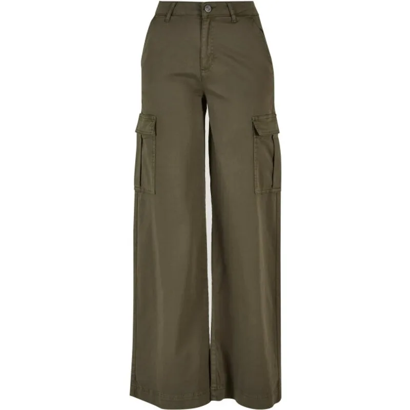 Urban Classics Dames twill hoge taille wijde pijpen cargo broek