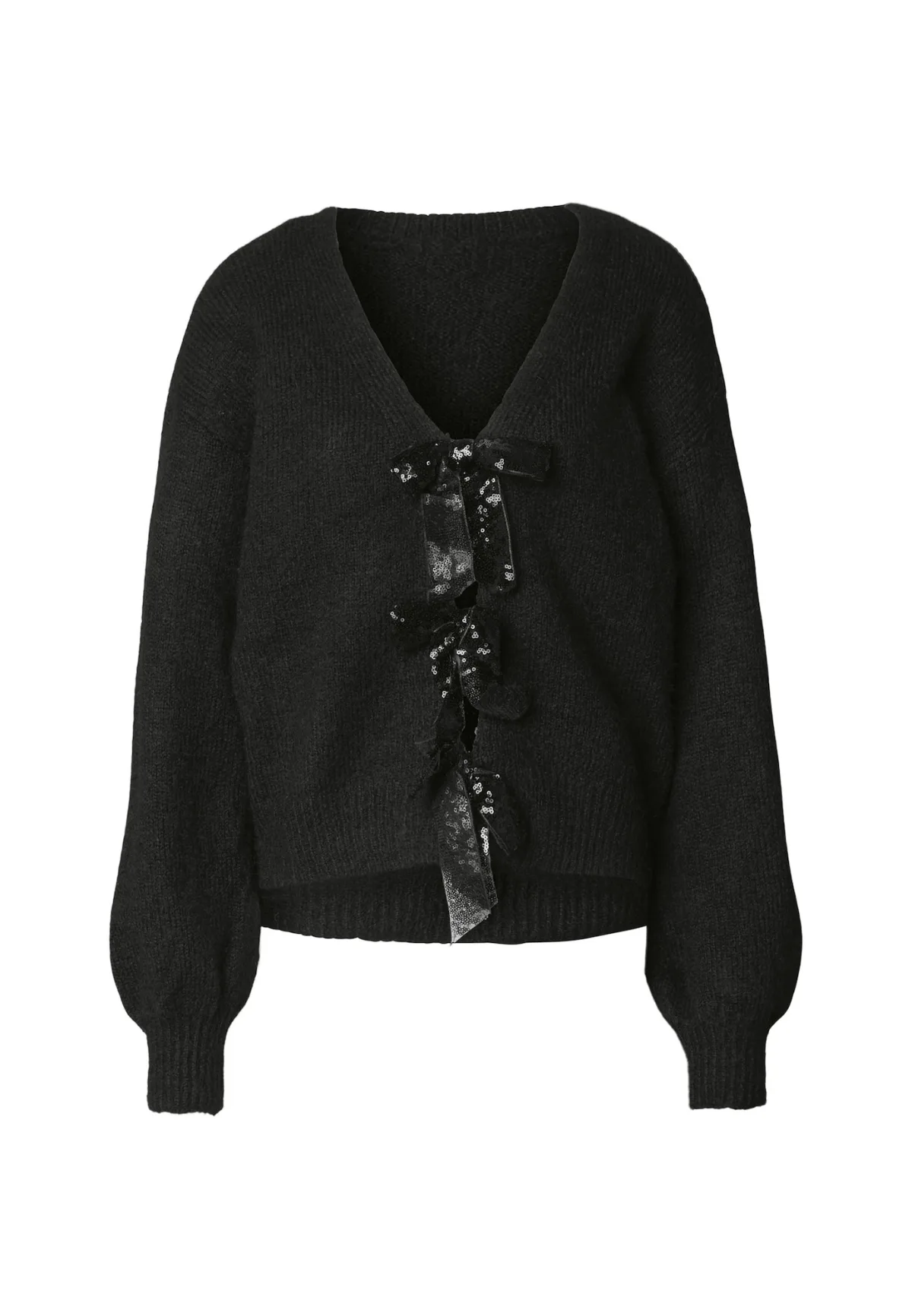 Design: Geribbelde kraag, Geribd ceintuurtje; Type sluiting: Koord; Materiaal: Knitwear; Halstype: V-hals; Motief: Effen; Details: Pailletten; Extra's: Voelt zacht aan; Pasvorm: Normale pasvorm; Armlengte: Lange mouw; Lengte: Normale lengte