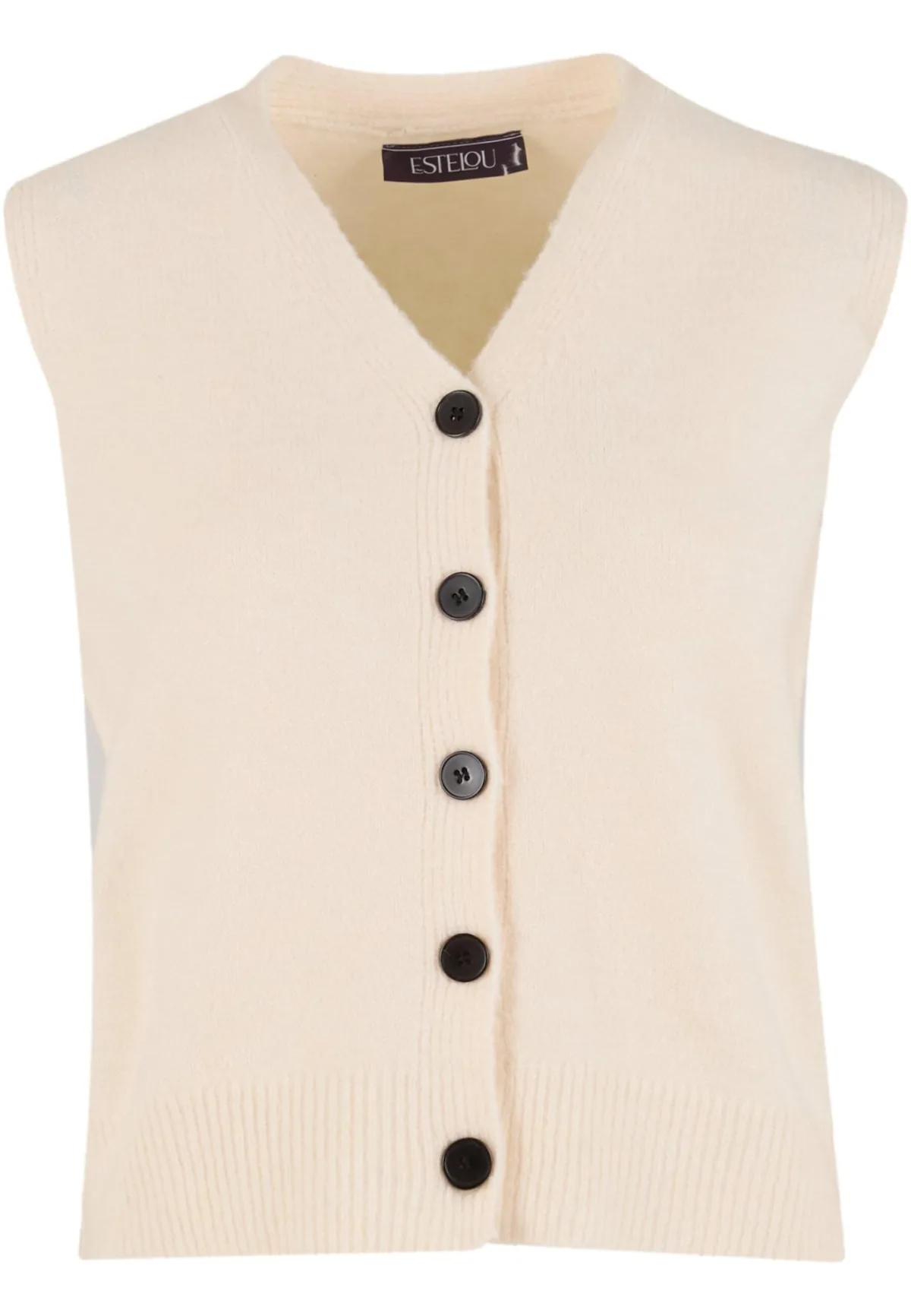 Design: Geribbelde kraag, Knop placket; Type sluiting: Knoopsluiting; Materiaal: Knitwear; Halstype: V-hals; Motief: Effen; Extra's: Fully fashioned; Pasvorm: Normale pasvorm; Armlengte: Mouwloos; Lengte: Normale lengte
