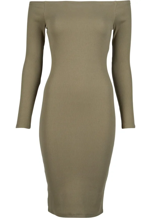 Urban Classics Ladies Off Shoulder Longsleeve Rib Dress Medium-lengte jurk...