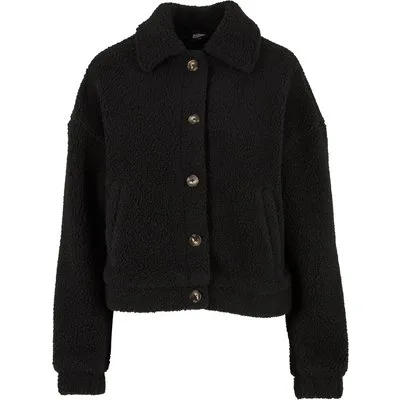 Urban Classics Ladies Short Sherpa Button Jacket Black