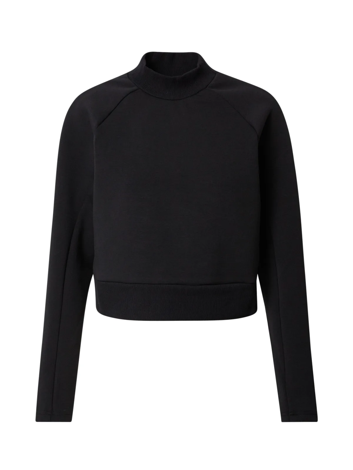 Een moderne en elegante trui voor vrouwen voor fashionista's. De snit is kort, maar biedt een ruime en dominante breedte met veel bewegingsvrijheid rondom de schouders dankzij de raglanvorm. De hoge kraag is van ribstof. De brede en benadrukte zoom voegt stijl toe aan het sweatshirt, terwijl het interlockmateriaal voor een zekere uitstraling zorgt. De snit is regulier. Sportief en elegant tegelijk. Overtrekstof 1: 60% polyester 36% katoen 4% elastaan, polyinterlock, 340 GSM