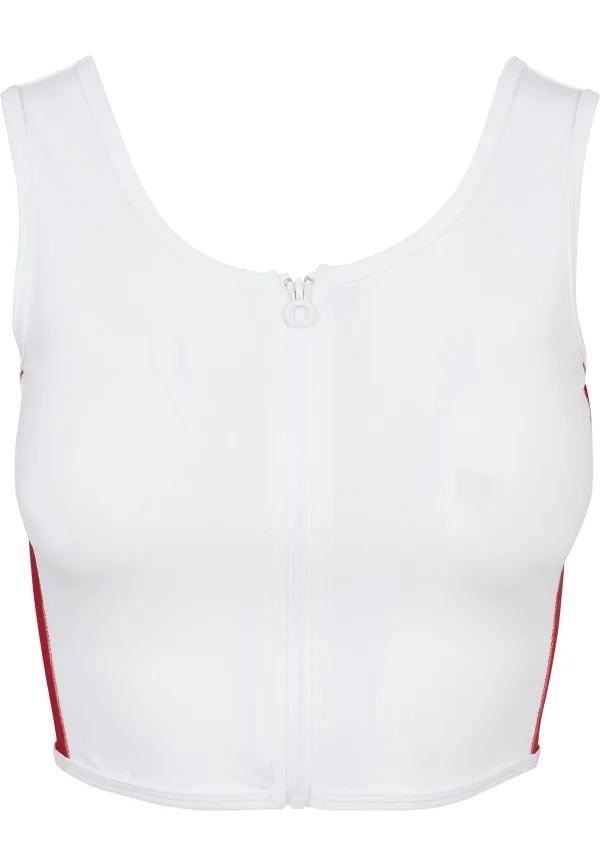Design: Ritssluiting, Ingelegde zoom/rand, Rechte zoom, Zijdelingse strepen, Contrasterende inserts; Materiaal: Jersey; Halstype: Ronde hals; Motief: Effen; Soort bandjes: Normale bandjes; Details: Zijstrepen; Extra's: Op staal naden, Lichte stof, Voelt zacht aan; Pasvorm: Slanke pasvorm; Armlengte: Mouwloos; Lengte: Korte pasvorm