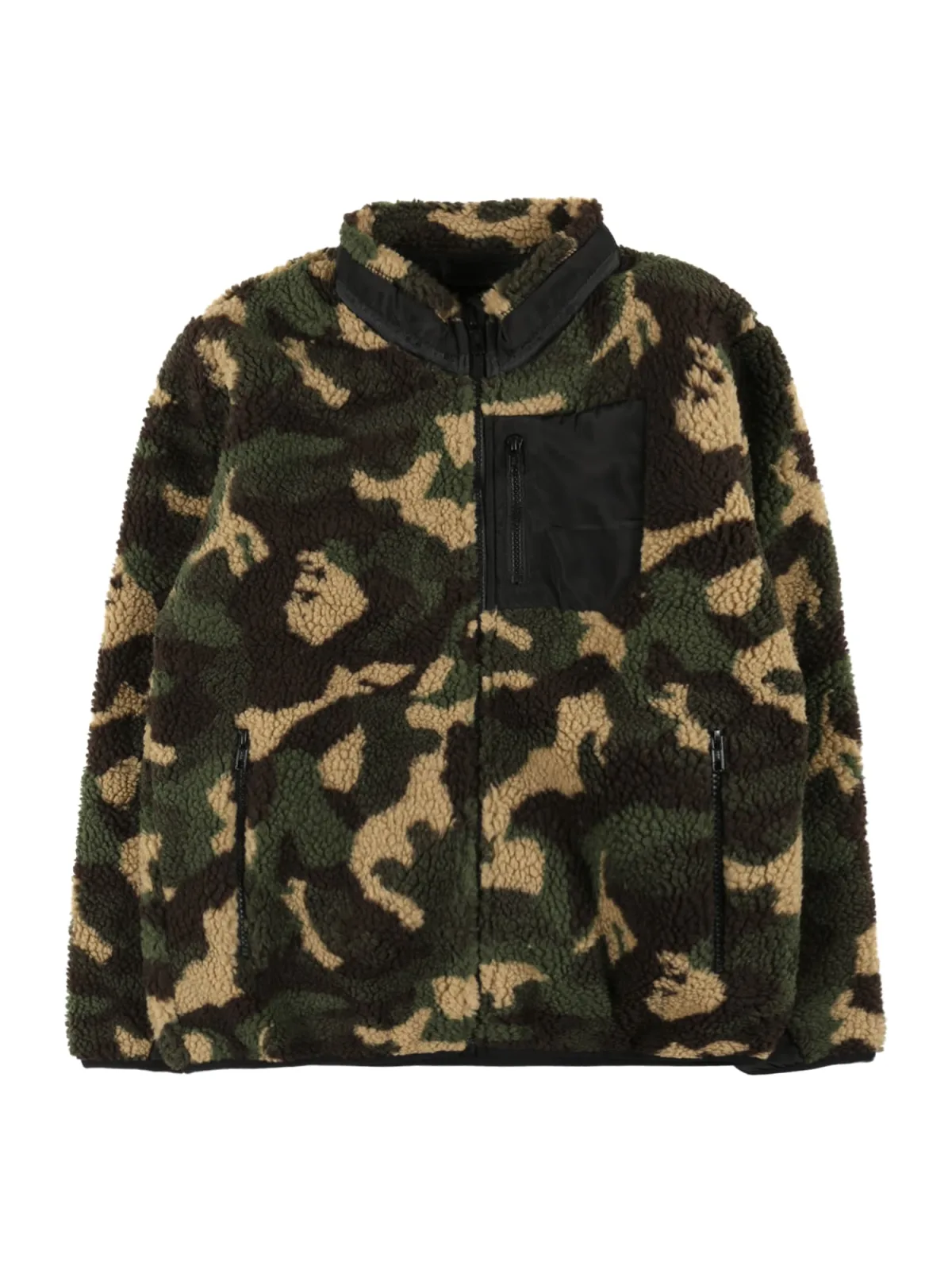 Design: Ritssluiting, Rechte zoom, Borstzak, Ritszakken aan de zijkant; Type sluiting: Ritssluiting; Voering: Licht gevoerd; Materiaal: Teddy; Halstype: Opstaande kraag; Motief: Camouflage; Extra's: All-over patroon, Voelt zacht aan; Pasvorm: Normale pasvorm; Armlengte: Lange mouw