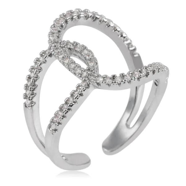 Ring van gerhodineerd metaal met witte kristallen. Semi-verstelbare maat.
