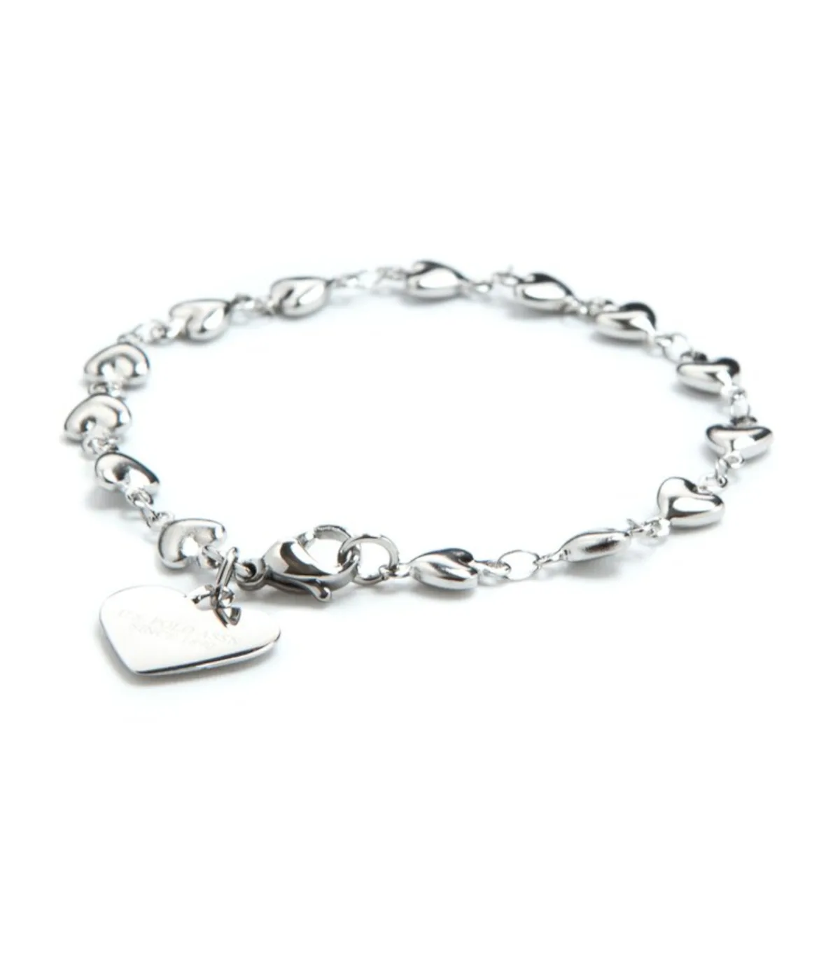 17,5 cm roestvrijstalen armband met kleine hartjes en gepersonaliseerd logolabel