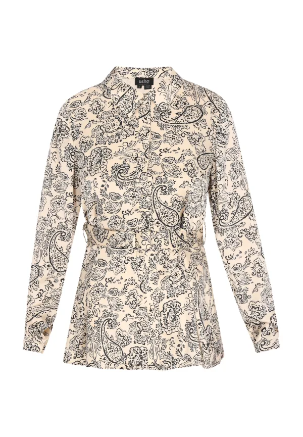 Blouse type: Klassieke blouse; Design: Met riem; Type sluiting: Knoopsluiting; Motief: Paisley; Kraag: Kentkraag; Extra's: All-over patroon; Pasvorm: Normale pasvorm; Armlengte: Lange mouw; Lengte: Normale lengte