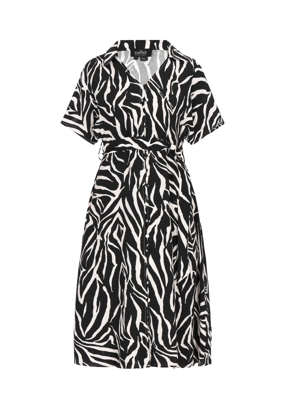 Specificaties: usha BLACK LABEL Blousejurk ‘Classic’ zwart / wolwit