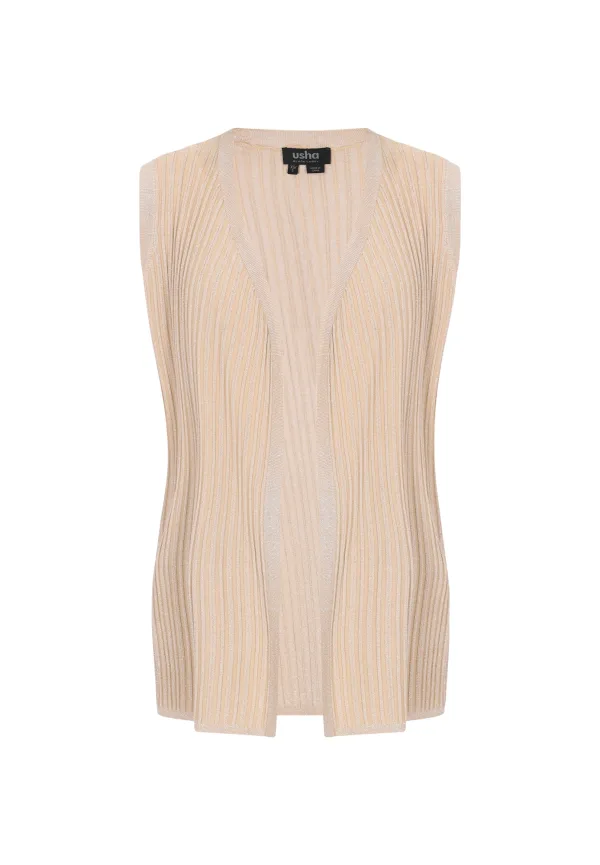 Specificaties: usha BLACK LABEL Gebreide bodywarmer ‘Classic’ beige / zilver