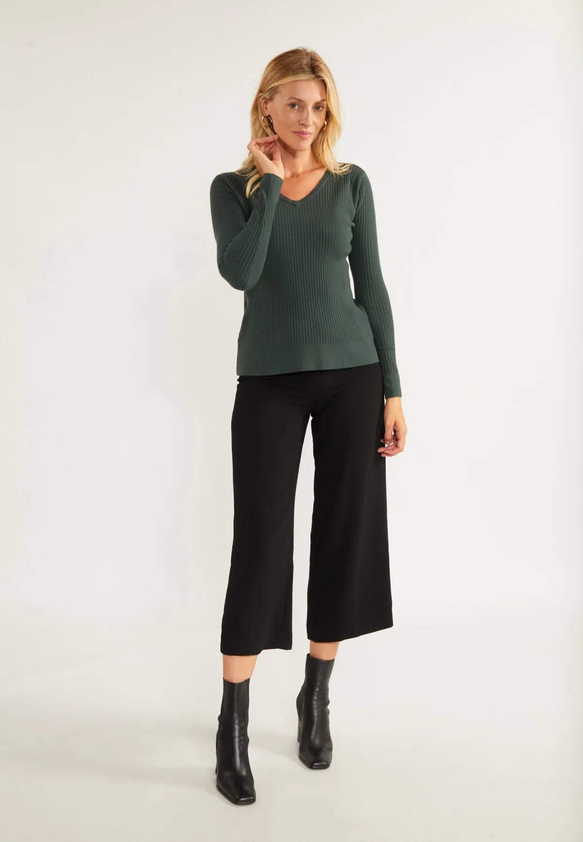 Deze trui van usha BLACK LABEL is gebreid van een zachte viscosemix. Het heeft een breed ribbelpatroon, waarbij alleen de zijkanten smal gebreid zijn. De elegante V-hals en delicate gebreide manchetten ronden dit tijdloze model af.