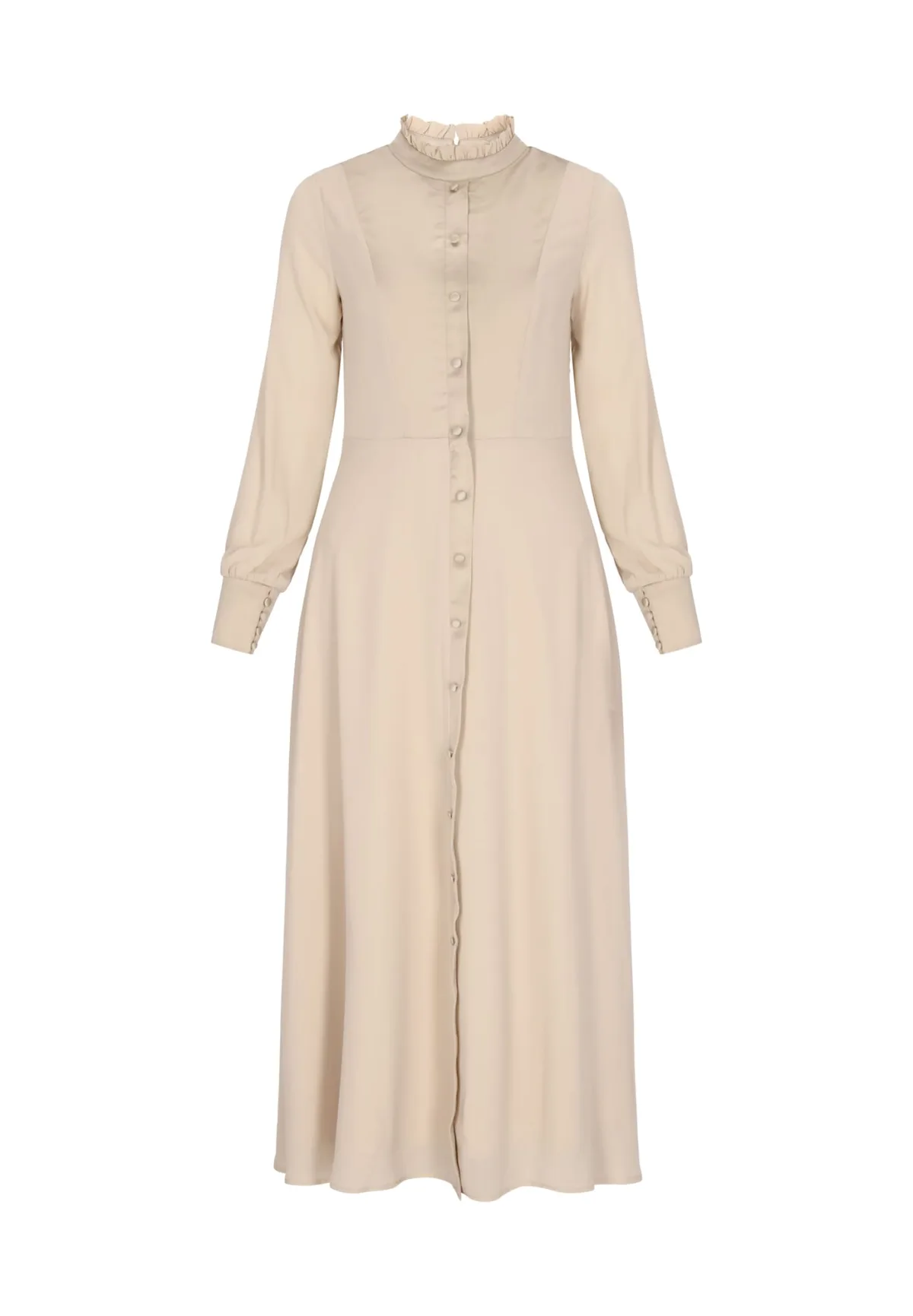 Design: Knop placket; Type sluiting: Knoopsluiting; Halstype: Opstaande kraag; Motief: Effen; Details: Ruches; Lengte: Lang/maxi; Pasvorm: Normale pasvorm; Armlengte: Lange mouw
