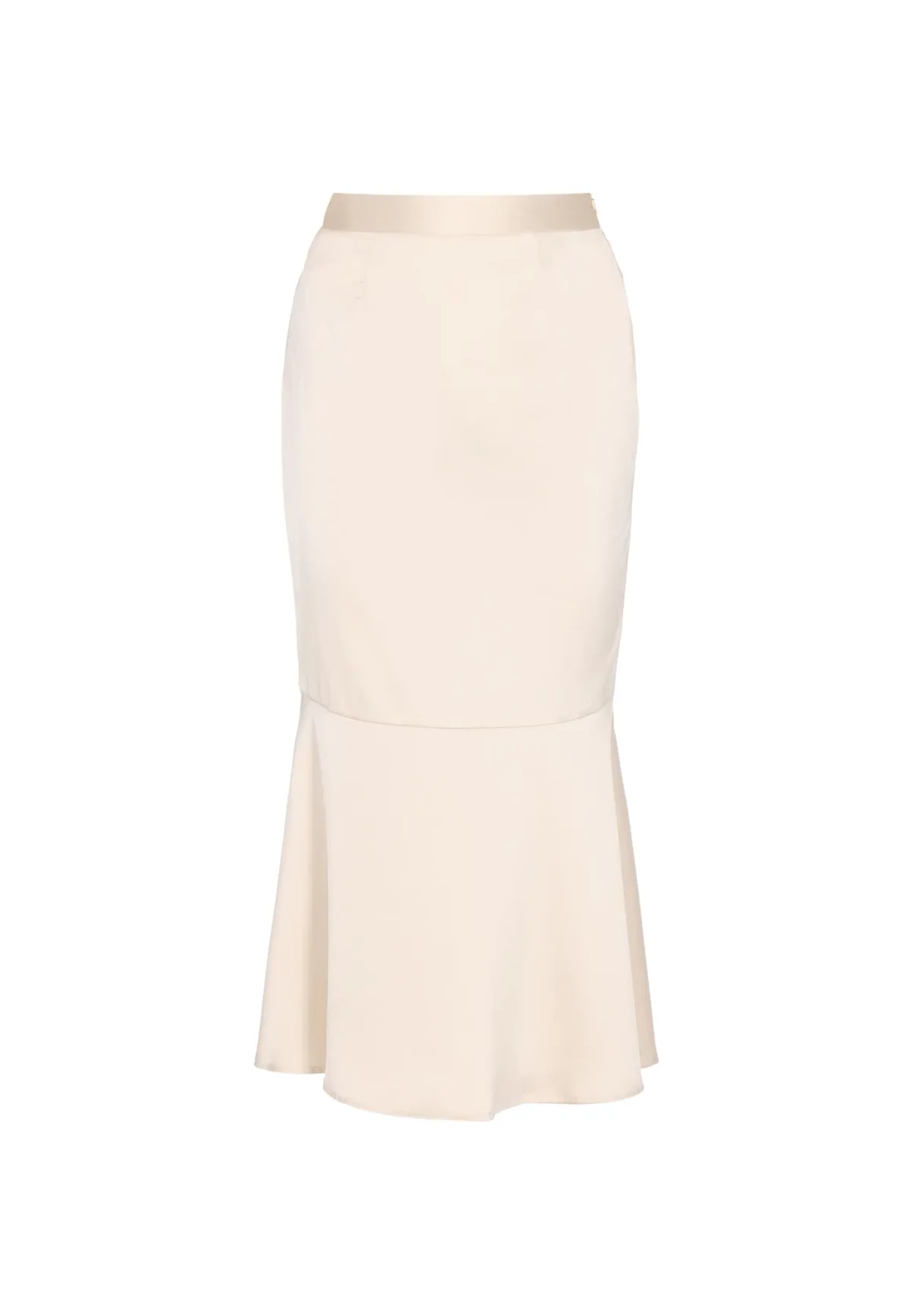 Design: Ritszakken aan de zijkant; Type sluiting: Ritssluiting; Materiaal: Satijn; Motief: Effen; Rokvorm: Volantrok; Details: Volant; Extra's: Gladde stof; Lengte: 3/4 lengte; Pasvorm: Slanke pasvorm