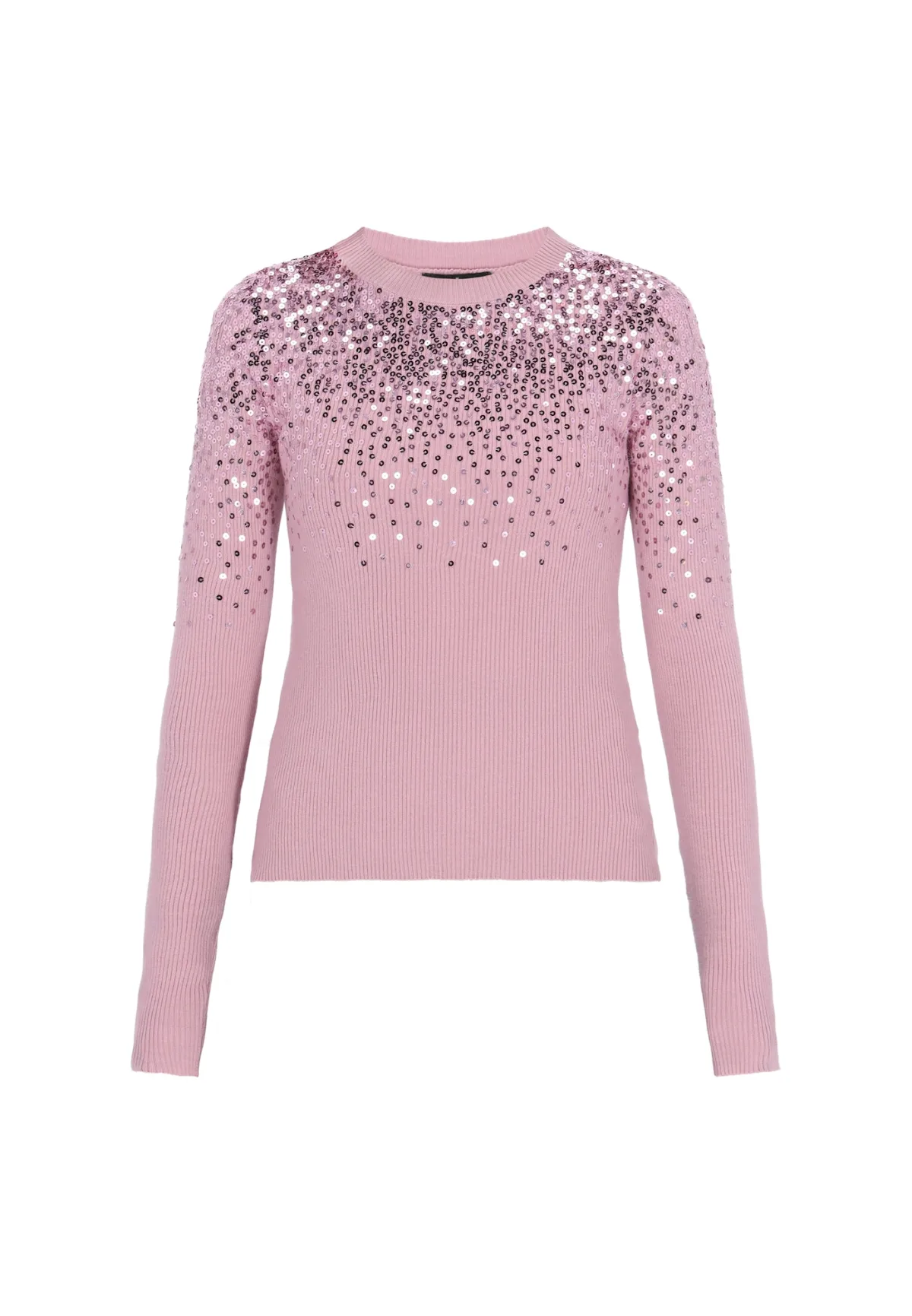 Design: Geribbelde kraag; Type sluiting: Slip; Materiaal: Knitwear; Halstype: Ronde hals; Details: Pailletten; Extra's: Glitterend, Fully fashioned; Pasvorm: Normale pasvorm; Armlengte: Lange mouw; Lengte: Normale lengte
