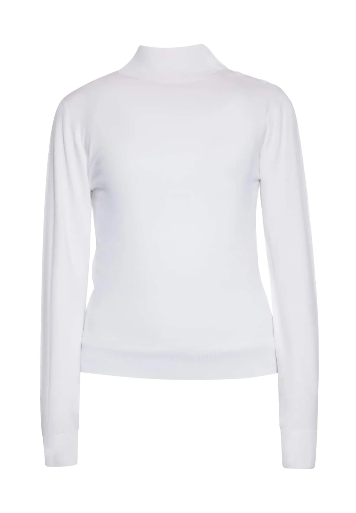 Deze elegante gebreide trui straalt verfijning uit met zijn coltrui en geribde details. Deze trui heeft lange mouwen. Deze gestreepte trui heeft een aansluitend silhouet en een zakelijke look, perfect voor elke professionele omgeving. De diagonale knopen op de linkerschouder voegen een vleugje charme toe aan deze klassieke rolkraagtrui, waardoor het een veelzijdig kledingstuk is voor je garderobe. Jumper