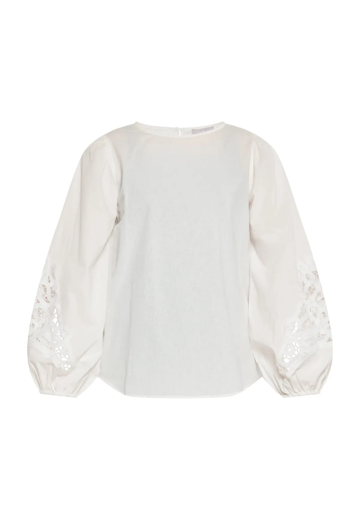Omarm elegantie met deze romantische blouse met lange pofmouwen en delicate kanten details. Het opengewerkte kanteffect bij de polsen zorgt voor een vrouwelijke touch, terwijl het uitgesneden detail met knoopjes aan de achterkant en de ronde halslijn de charme naar een hoger niveau tillen. Deze blouse met kant is perfect voor elke gelegenheid en biedt casual verfijning waardoor je je moeiteloos stijlvol en zelfverzekerd voelt. Blouse