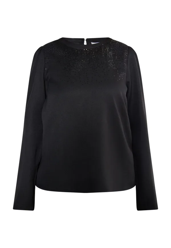 Dit charmante blouseshirt van usha staat garant voor een briljante styling. Het elegante ontwerp met paillettenafwerking heeft pofmouwen, een klein opstaand kraagje en een knoopje aan de achterkant. Het licht gestructureerde bovenmateriaal heeft een elegante uitstraling. Blouse