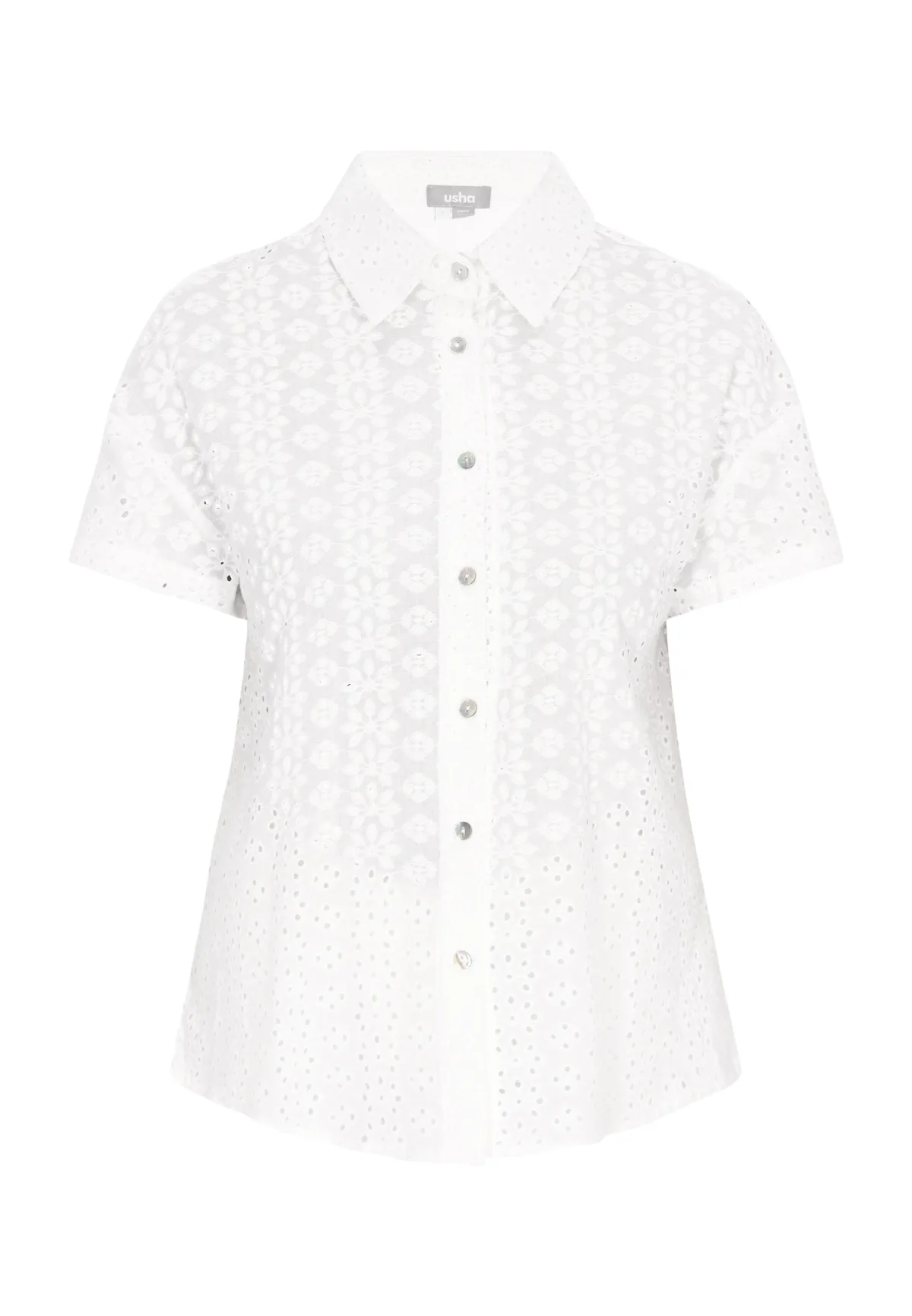 Blouse type: Klassieke blouse; Design: Gevoerde zoom/rand; Type sluiting: Knoopsluiting; Materiaal: Katoen; Motief: Effen; Kraag: Kentkraag; Details: Borduursels, Mesh; Extra's: Voelt zacht aan; Pasvorm: Normale pasvorm; Armlengte: Kwartmouw; Lengte: Normale lengte