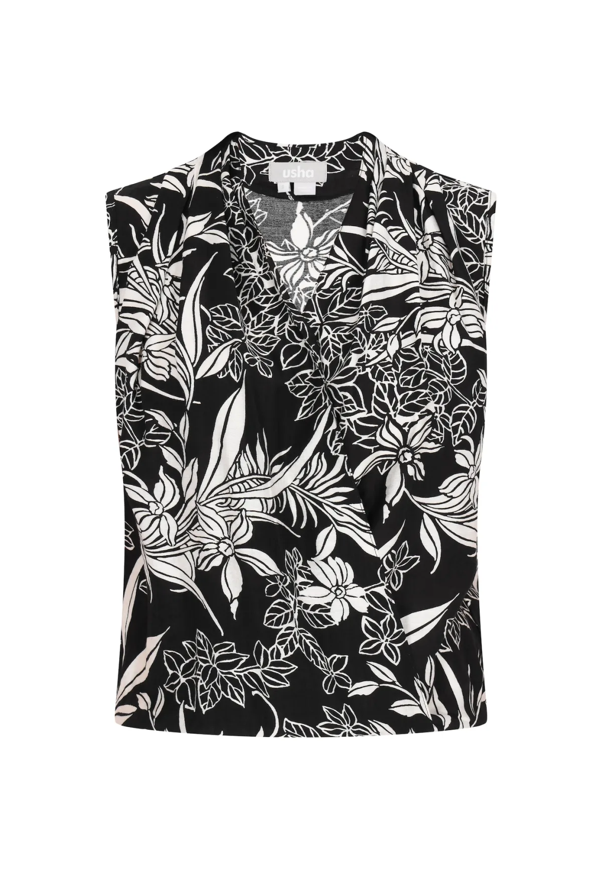 Blouse type: Blouseshirt; Design: Gevoerde zoom/rand; Materiaal: Viscose; Motief: Bloemenprint; Kraag: Zonder kraag; Details: Plooien, Gedrapeerd, Wikkel design; Extra's: All-over patroon; Pasvorm: Normale pasvorm; Armlengte: Mouwloos; Lengte: Normale lengte