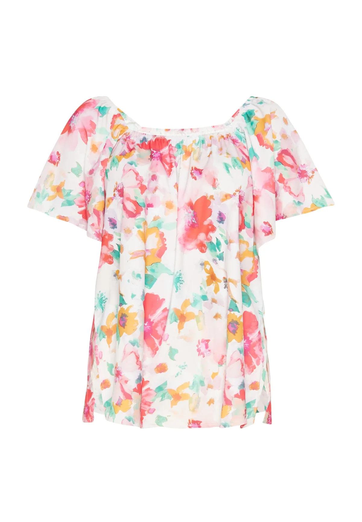 Blouse type: Wijde blouse; Type sluiting: Slip; Materiaal: Chiffon; Motief: Bloemenprint; Kraag: Zonder kraag; Details: Gedrapeerd; Pasvorm: Losse pasvorm; Armlengte: Kwartmouw; Lengte: Normale lengte